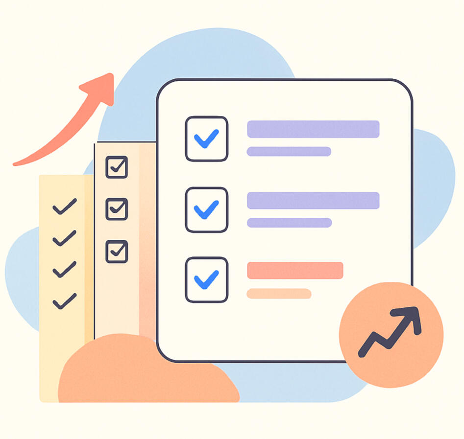 Track completed and added tasks with interactive analytics. Filter by date, view your completion rate, and discover your most-used tags.